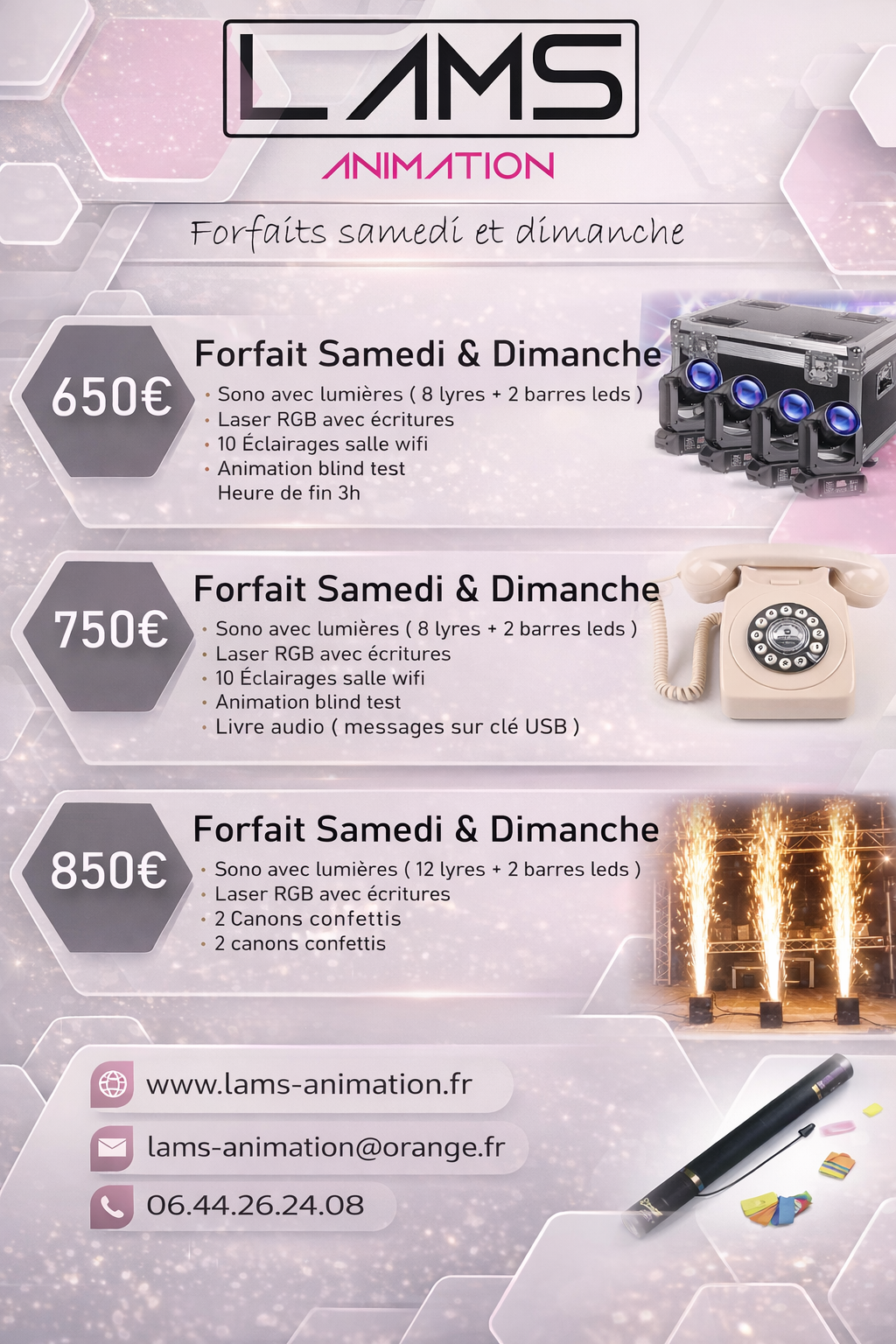 les FORFAITS pour vos animations du samedi ou dimanche